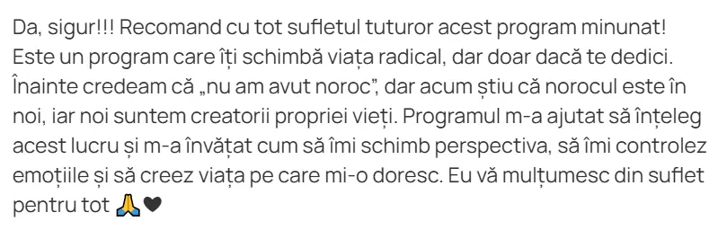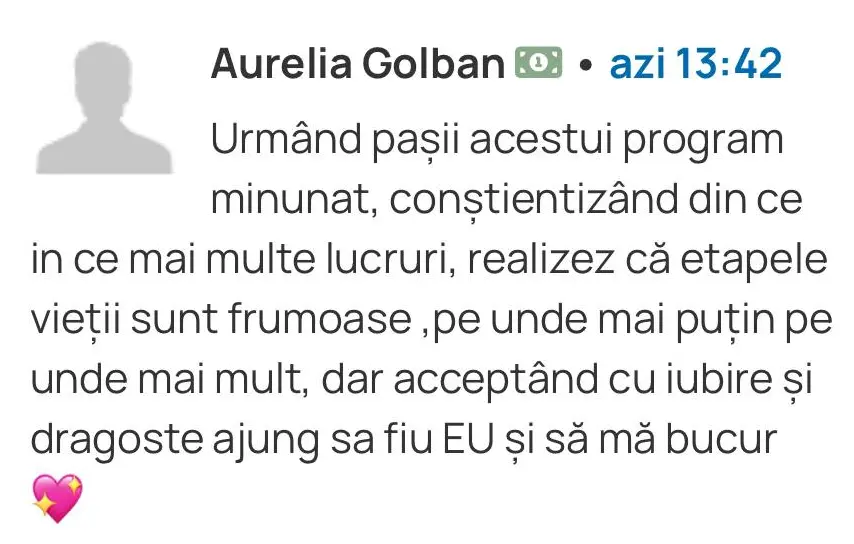 Eliberare emoțională și fizică – tensiuni și blocaje s-au diminuat.