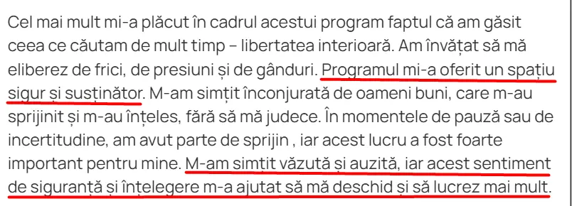Nu se mai izolează, se simte auzită și înțeleasă.