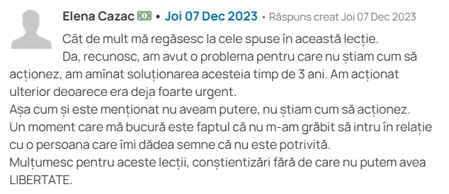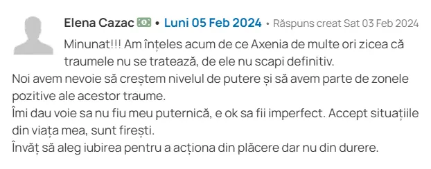 Știe cum să lucreze cu gândurile și traumele, nu mai e pe pilot automat.