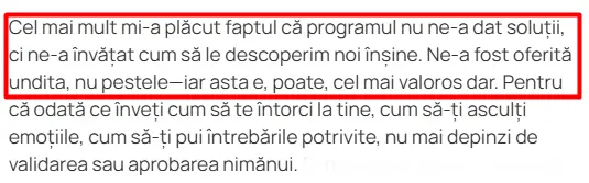 Nu mai acceptă abuzul sub nicio formă: nici din exterior, nici față de sine.