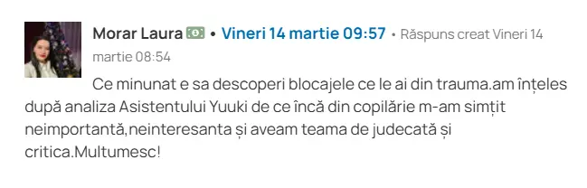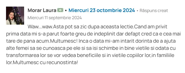 Se gândește la direcții de specializare (coaching, consiliere, lucrul cu traume).