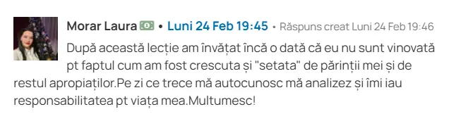 Nu se mai lasă afectată de tot ce se întâmplă: „nu mai cad în victimizare”.